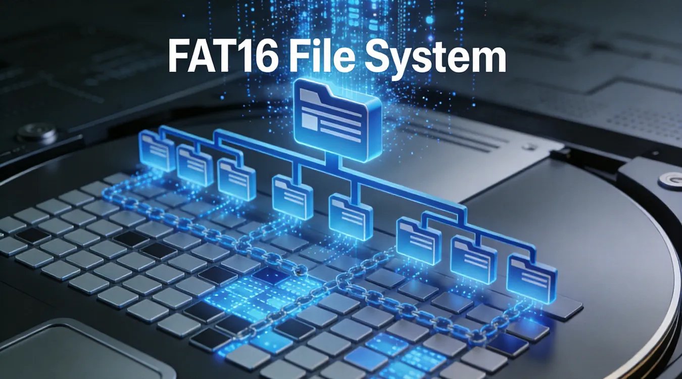 FAT16 Sistema de arquivos (Tabela 16 de alocação de arquivos) é um dos primeiros sistemas de arquivos de disco desenvolvido pela Microsoft e amplamente utilizado no DOS e nos primeiros sistemas operacionais Windows. Ele representa uma das primeiras abordagens estruturadas para o gerenciamento de arquivos em dispositivos de armazenamento baseados em blocos. Embora hoje seja bastante obsoleto, o sistema de arquivos FAT16 ainda é encontrado em sistemas legados, dispositivos incorporados, equipamentos industriais e mídias removíveis mais antigas.