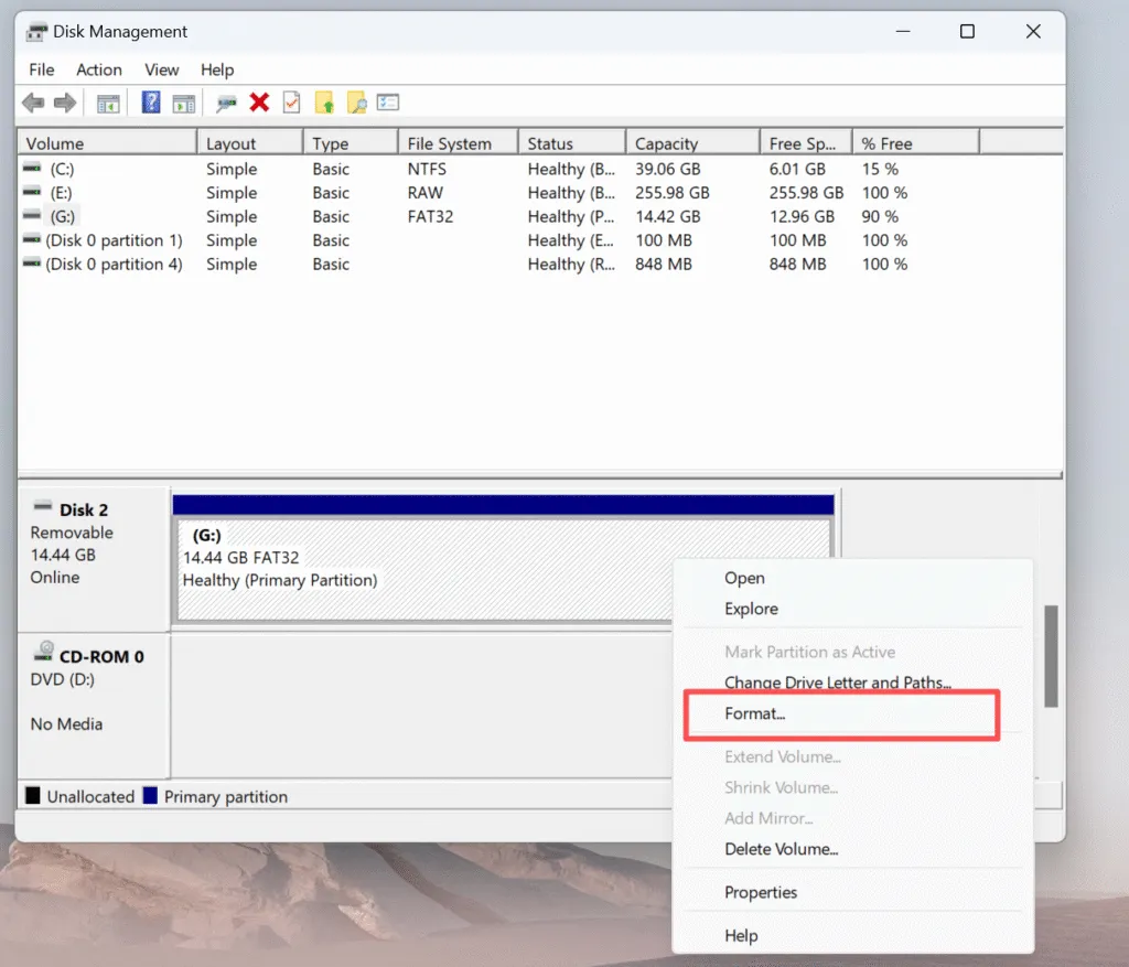 If the USB drive contains no important files, formatting is simple. The steps below work for all common USB types — including flash drives and thumb drives.